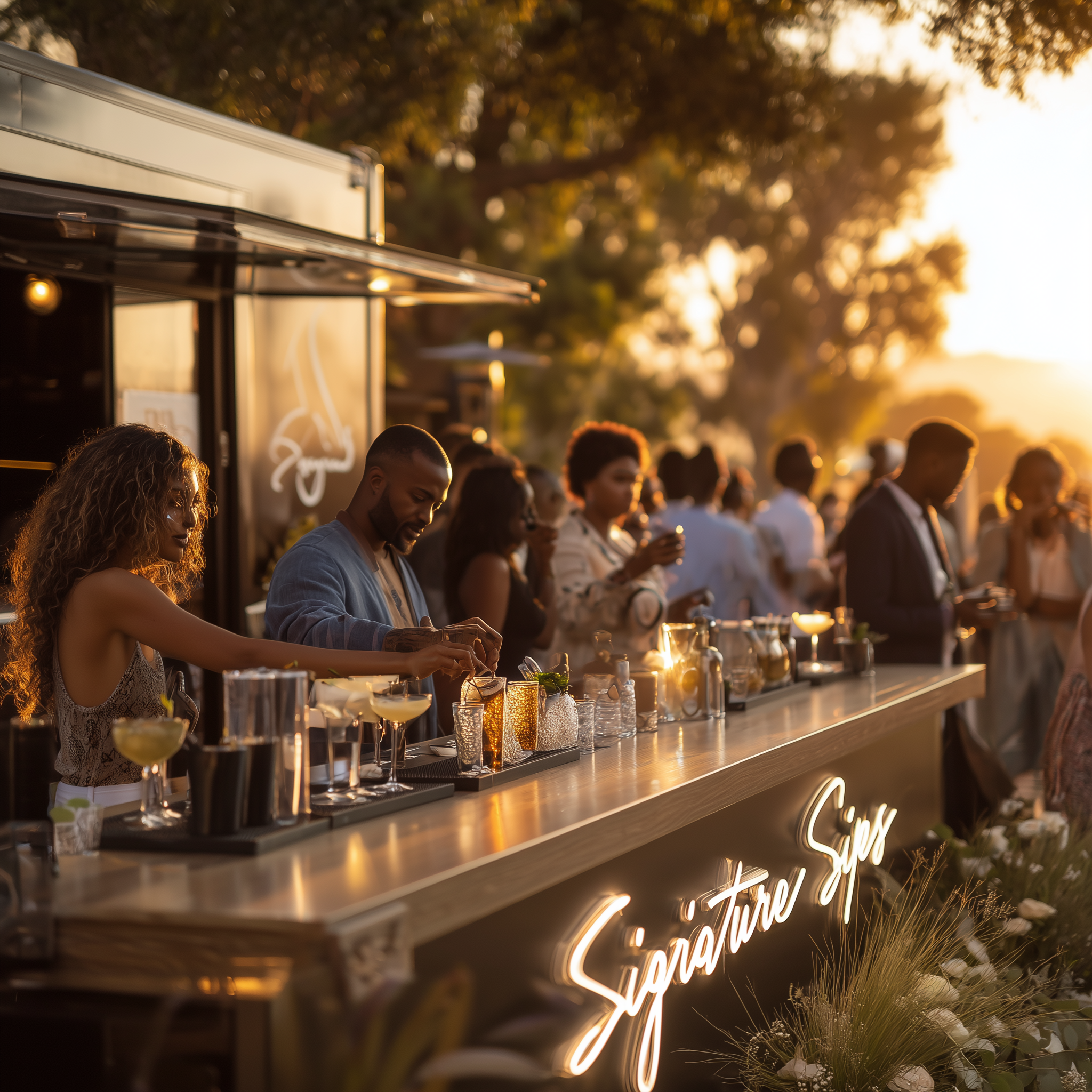 We're not just a mobile bar; we're your new favorite way to celebrate. Our mission is to bring a fun, creative, and laid-back vibe to every event, making each sip feel like a toast with your best friend. Whether it's a birthday bash, a dreamy wedding, a lively festival, or a chic corporate event, we've got the perfect mix of classic favorites and custom creations to make your celebration unforgettable. Let's make some memories together, one signature sip at a time!